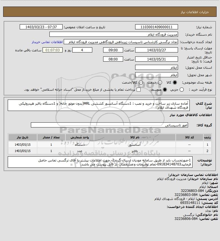 شرح کلی نیاز: آماده سازی زیر ساخت و خرید و نصب : 1دستگاه آسانسور کششی MRL(بدون موتور خانه( و 1دستگاه باالبر هیدرولیکی