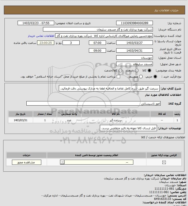 نام دستگاه خریدار:شرکت بهره برداری نفت و گاز مسجد سلیمان