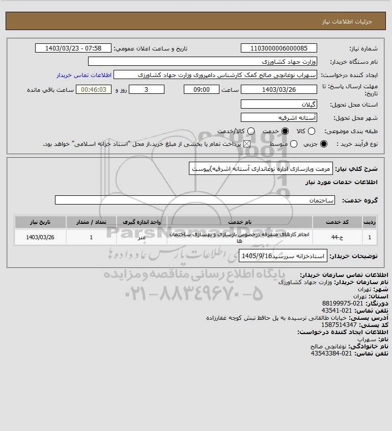 شرح کلی نیاز: مرمت وبازسازی اداره نوغانداری آستانه اشرفیه)پیوست