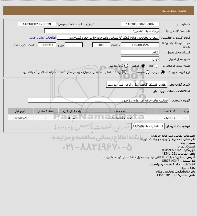 استعلام نظارت کلینیک گیاهپزشگی فومن طبق پیوست, استعلام نظارت کلینیک گیاهپزشگی فومن طبق پیوست