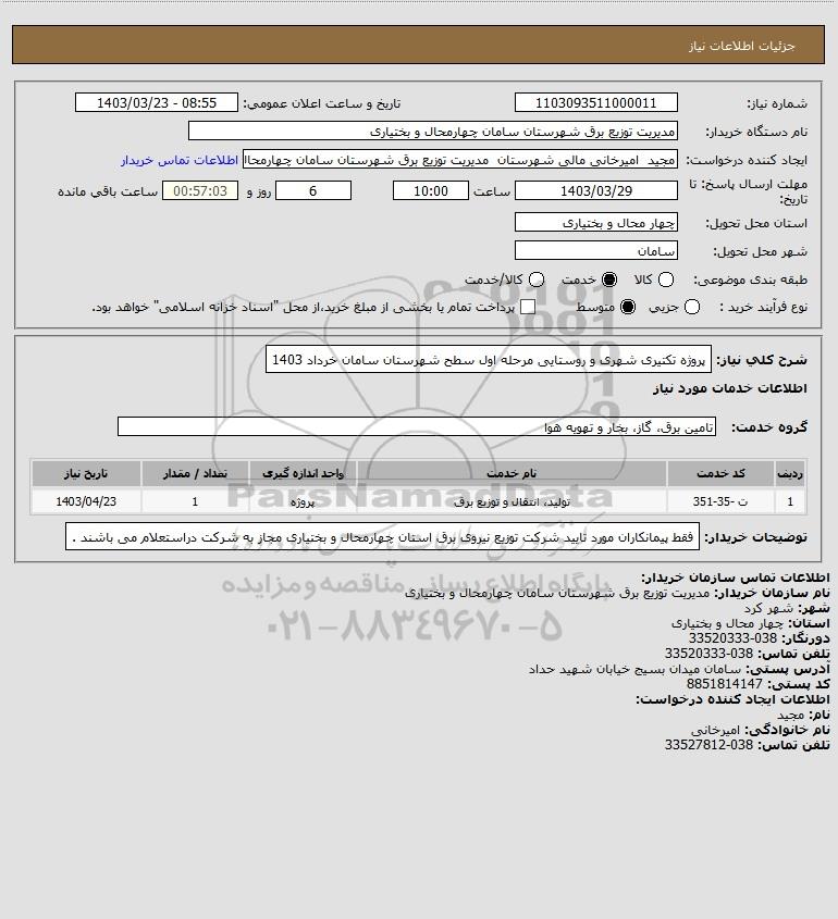 نام دستگاه خریدار:مدیریت توزیع برق شهرستان سامان چهارمحال و بختیاری