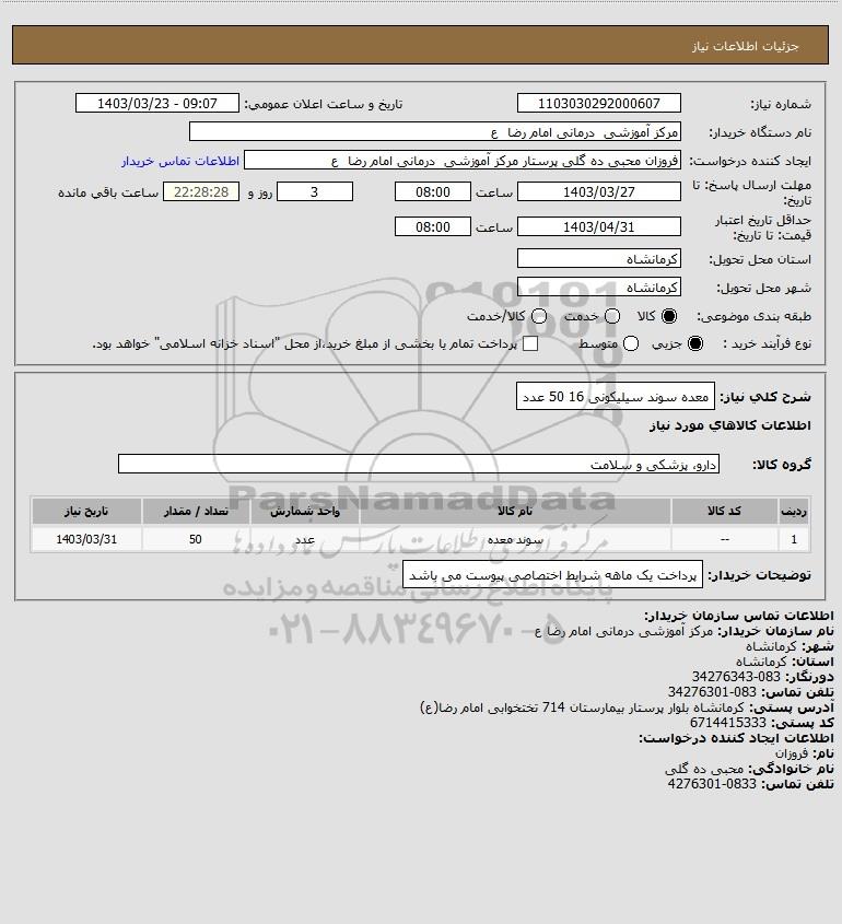 | 1 | -- | سوند معده | عدد | 50 | 1403/03/31 |