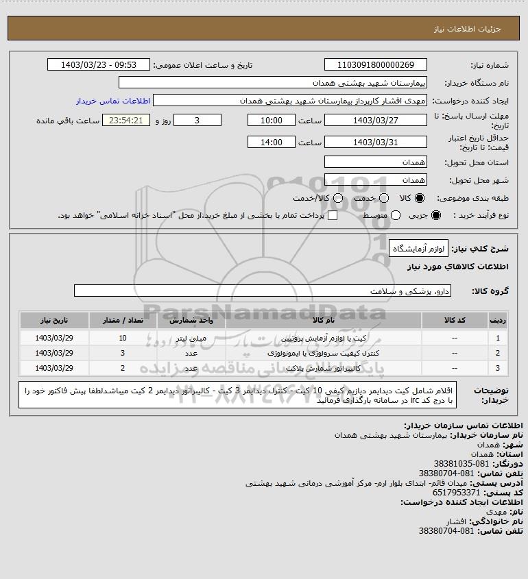 نام دستگاه خریدار:بیمارستان شهید بهشتی همدان