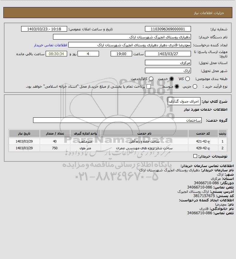 نام دستگاه خریدار:دهیاری روستای انجیرک شهرستان اراک