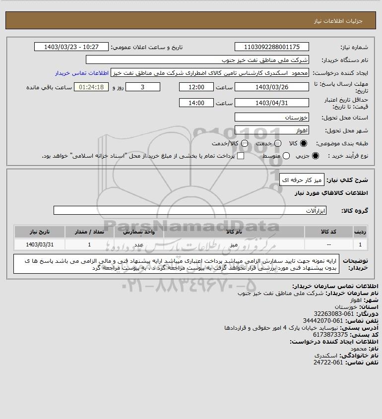 نام دستگاه خریدار:شرکت ملی مناطق نفت خیز جنوب