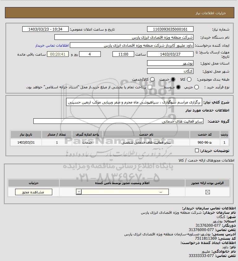 نام دستگاه خریدار:شرکت منطقه ویژه اقتصادی انرژی پارس