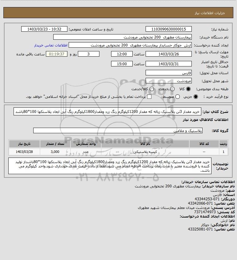نام دستگاه خریدار:بیمارستان مطهری 200 تختخوابی مرودشت