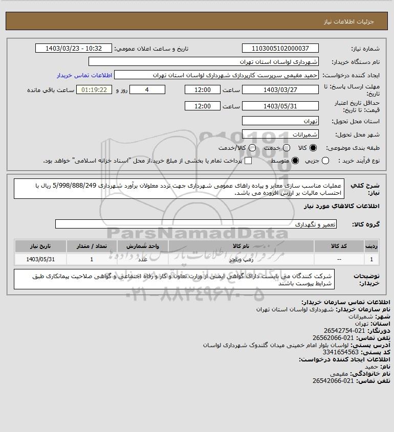 نام دستگاه خریدار:شهرداری لواسان استان تهران