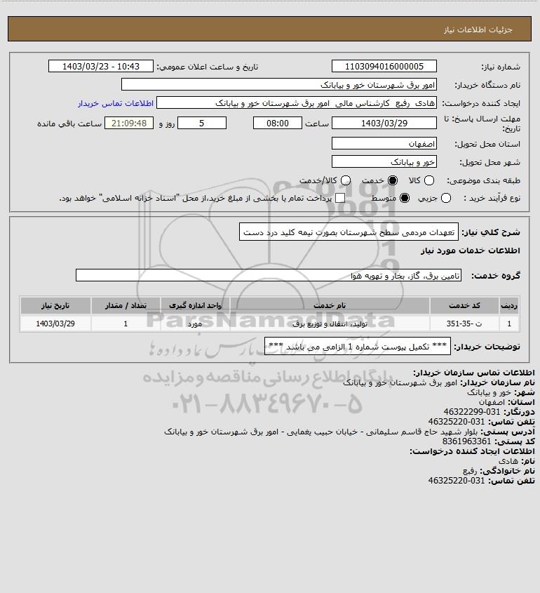 نام دستگاه خریدار:امور برق شهرستان خور و بیابانک
