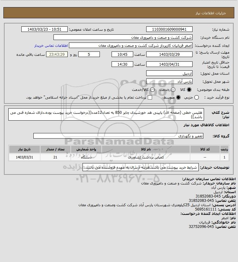 نام دستگاه خریدار:شرکت کشت و صنعت و دامپروری مغان