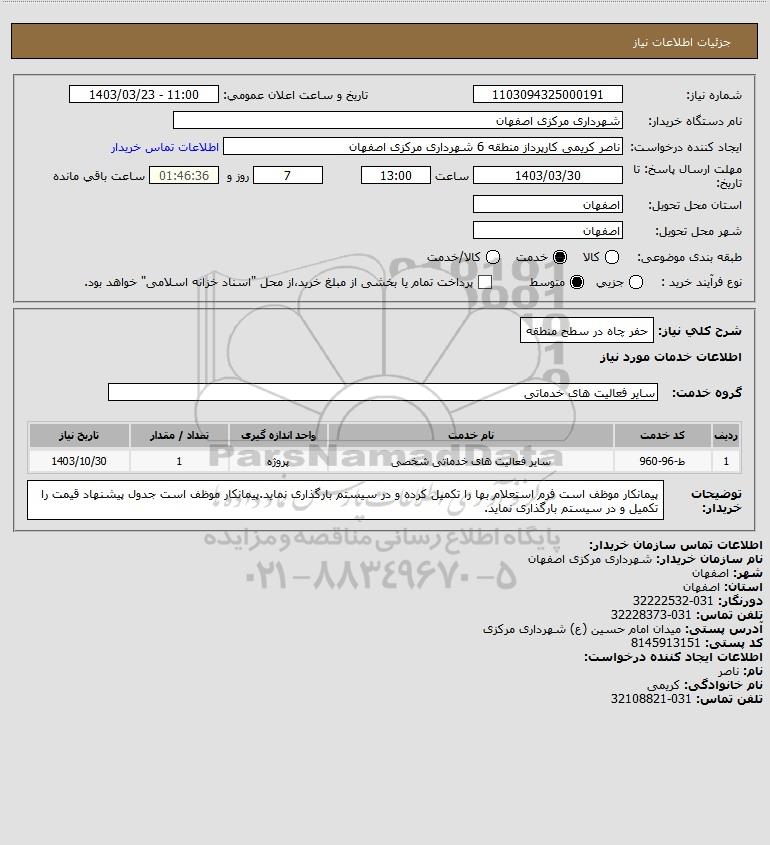 شرح کلی نیاز: حفر چاه در سطح منطقه
