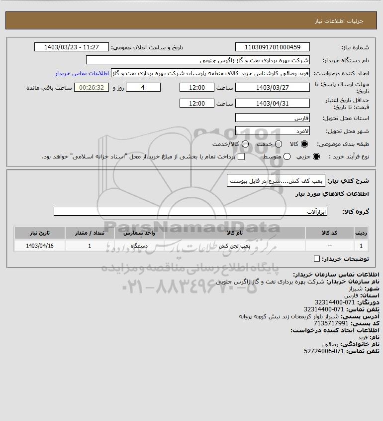 نام دستگاه خریدار:شرکت بهره برداری نفت و گاز زاگرس جنوبی