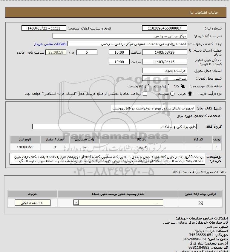 نام دستگاه خریدار:مرکز درمانی سرخس