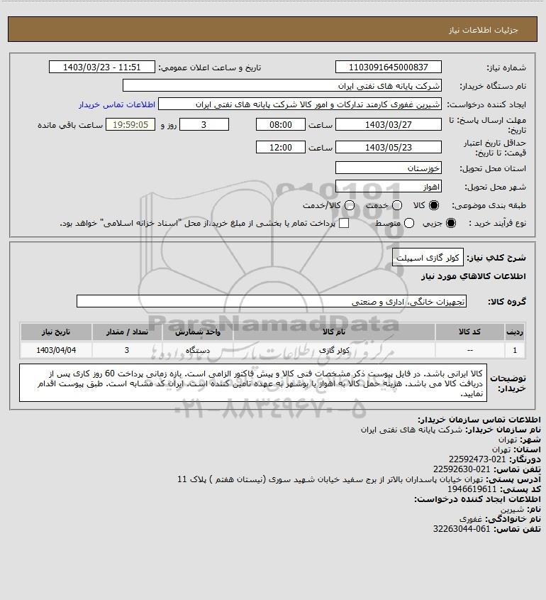 | 1 | -- | کولر گازی | دستگاه | 3 | 1403/04/04 |