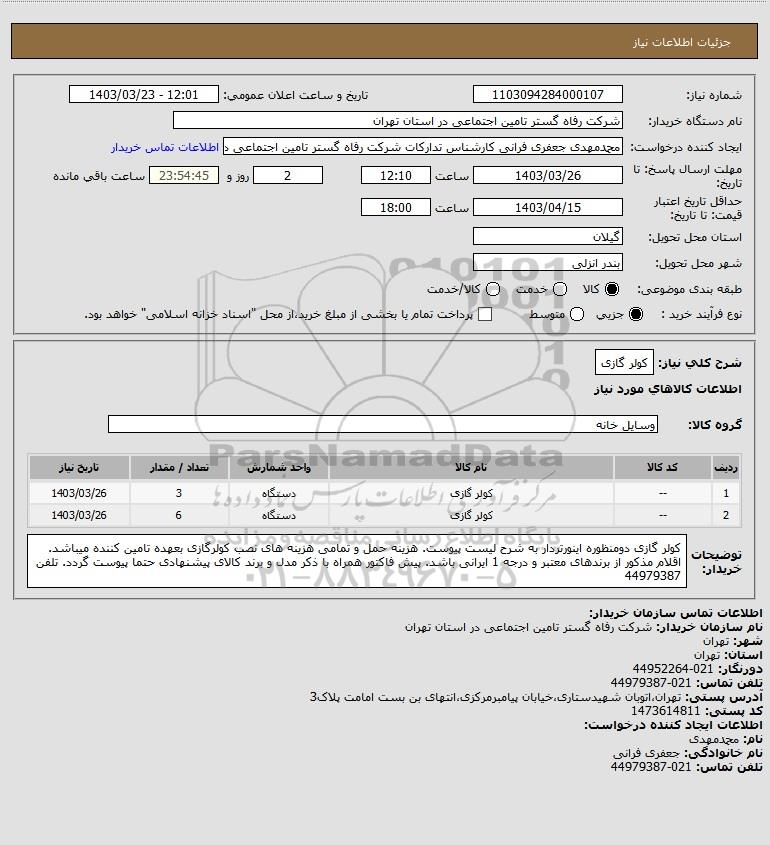 | 2 | -- | کولر گازی | دستگاه | 6 | 1403/03/26 |