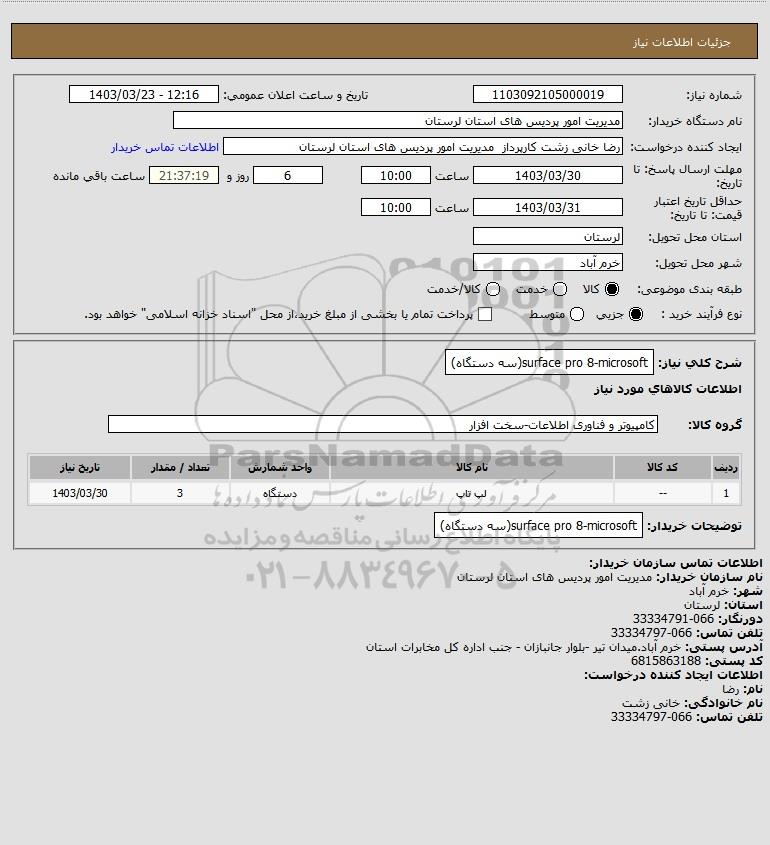 شرح کلی نیاز: surface pro 8-microsoft(سه دستگاه)