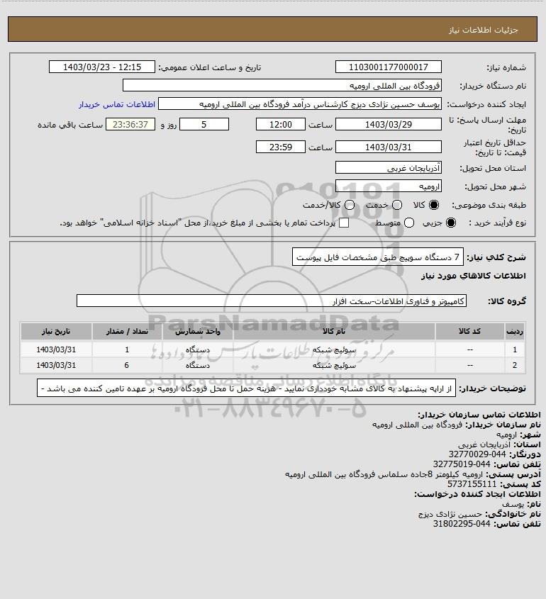 شرح کلی نیاز: 7 دستگاه سوپیچ طبق مشخصات فایل پیوست
