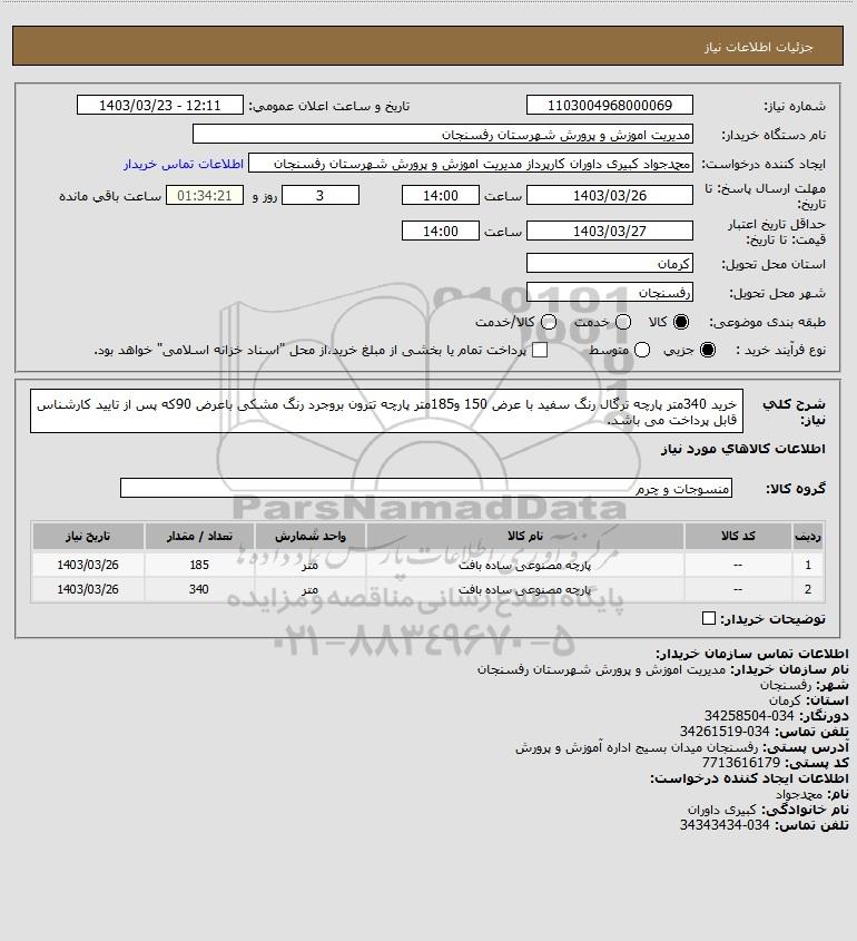 نام دستگاه خریدار:مدیریت اموزش و پرورش شهرستان رفسنجان