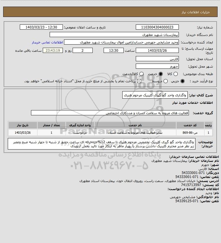 استعلام واگذاری واحد گچ گیری کلینیک مرحوم هنری, استعلام واگذاری واحد گچ گیری کلینیک مرحوم هنری