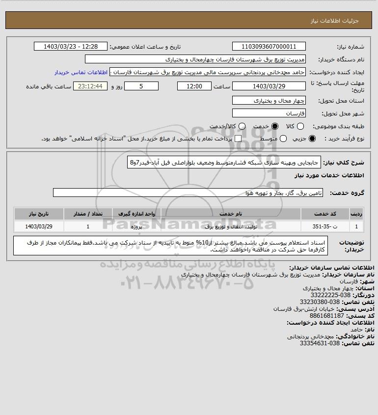 نام دستگاه خریدار:مدیریت توزیع برق شهرستان فارسان چهارمحال و بختیاری