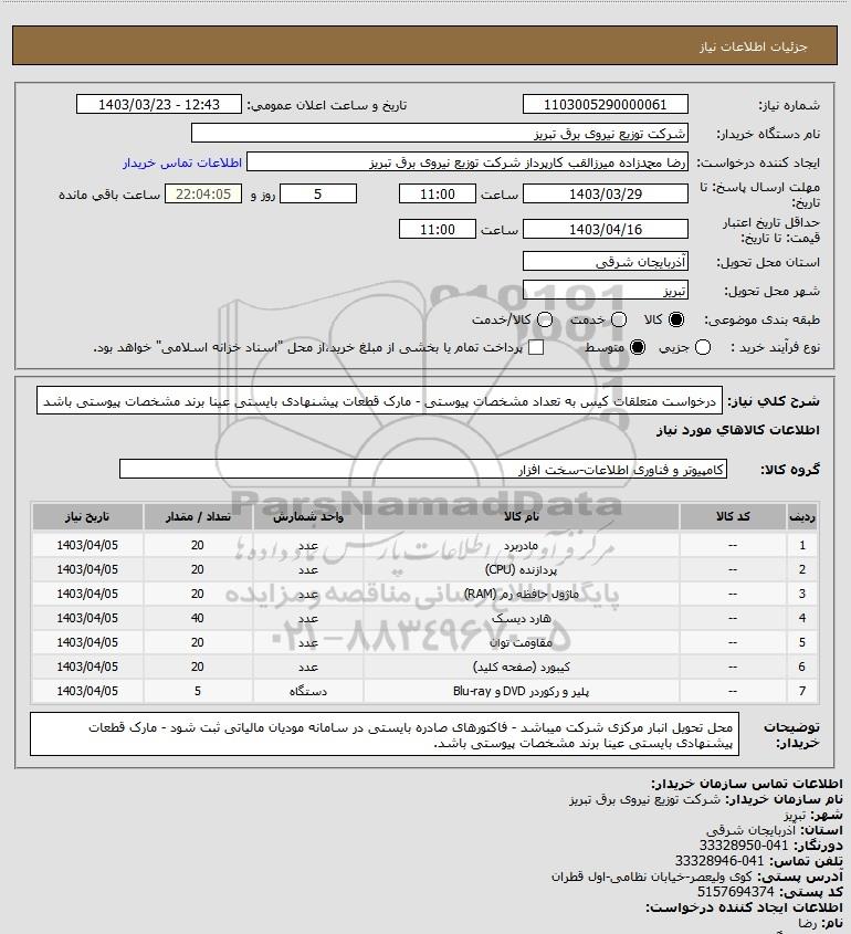 نام دستگاه خریدار:شرکت توزیع نیروی برق تبریز