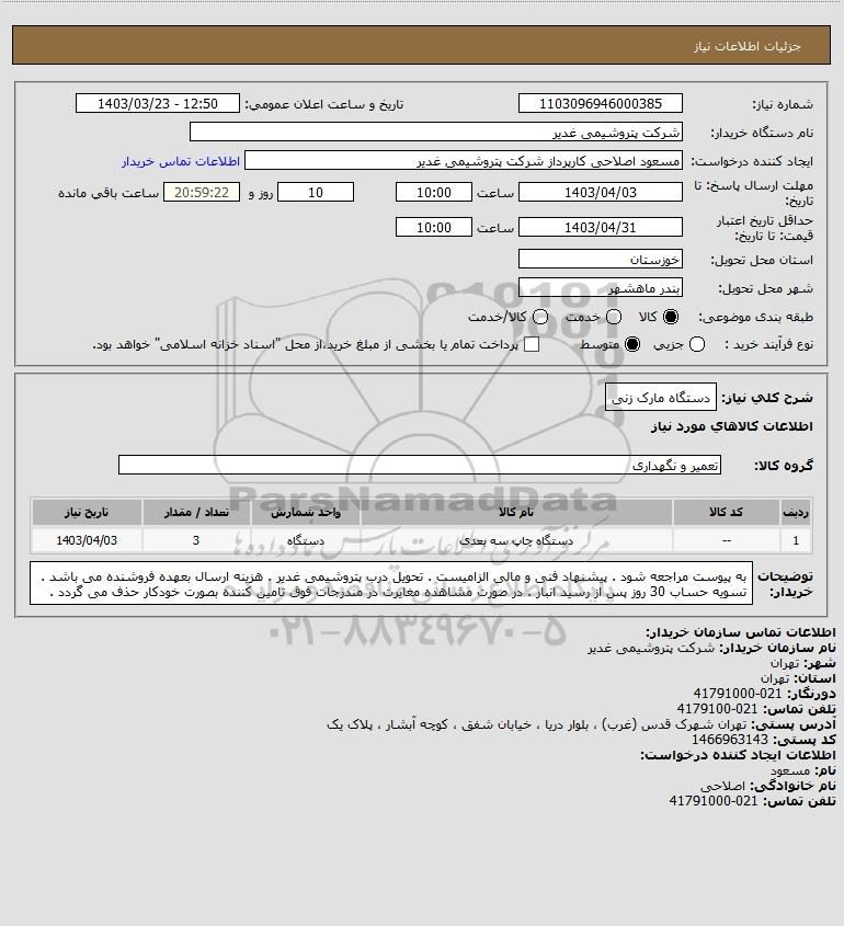 نام دستگاه خریدار:شرکت پتروشیمی غدیر