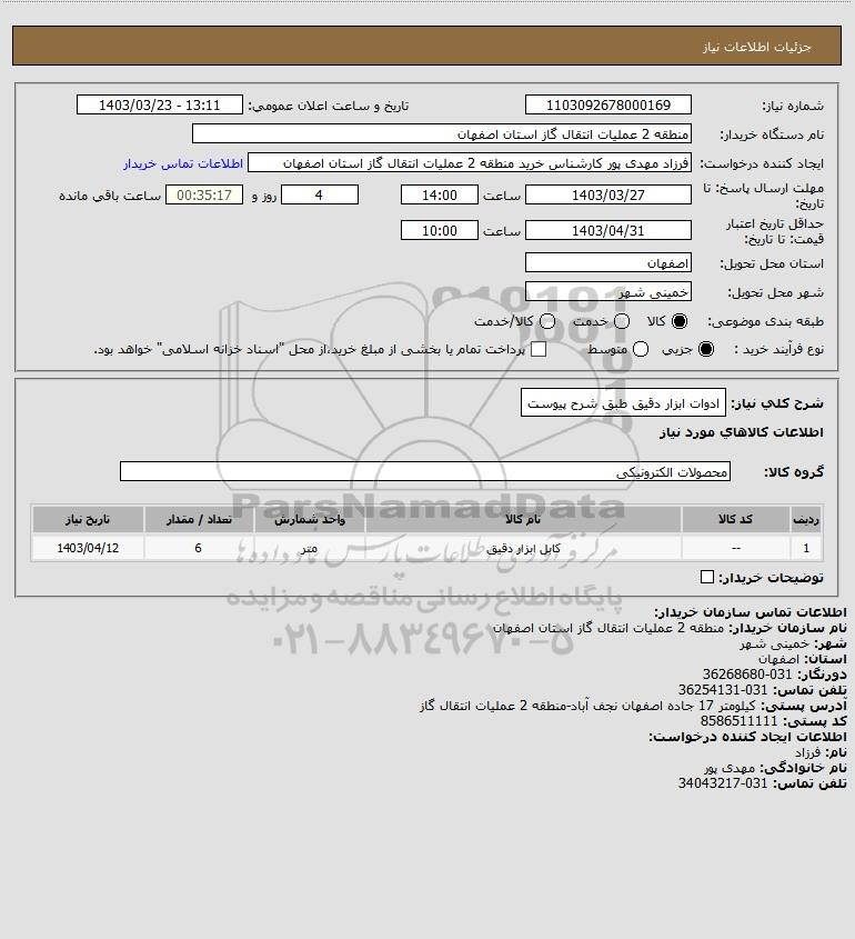 شرح کلی نیاز: ادوات ابزار دقیق طبق شرح پیوست