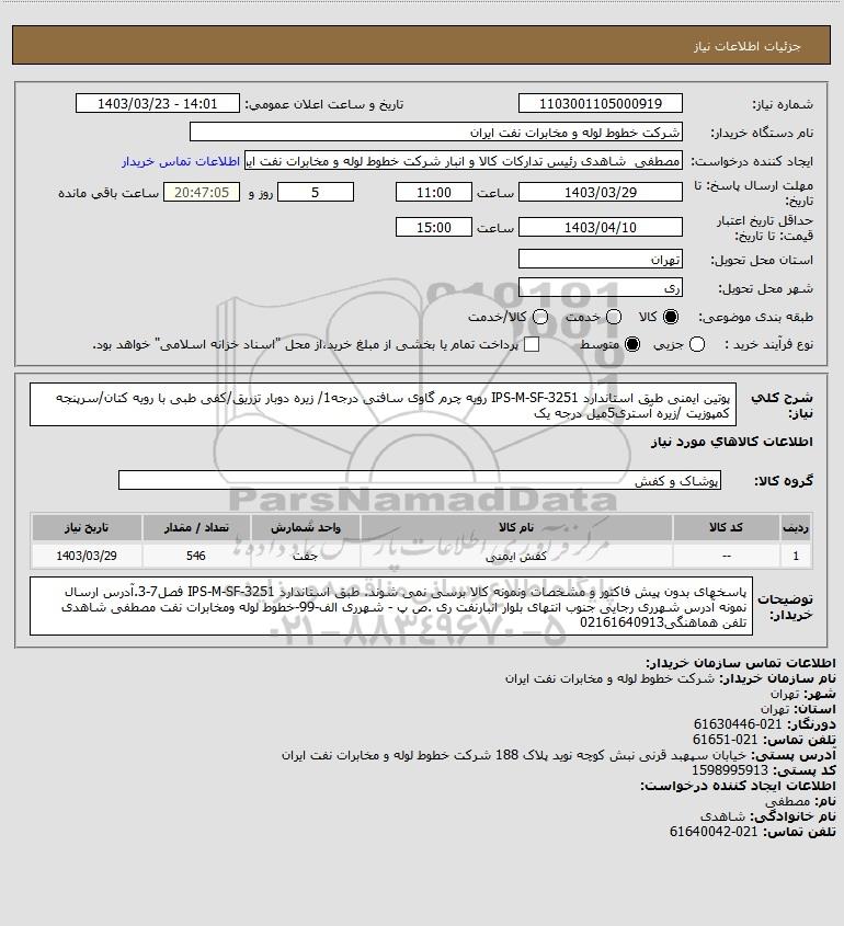 نام دستگاه خریدار:شرکت خطوط لوله و مخابرات نفت ایران