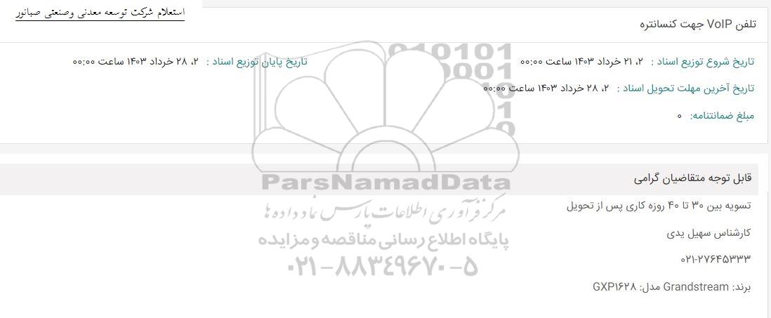 استعلام شرکت توسعه معدنی و صنعتی صبانور