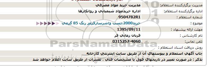 اداره برگزارکننده استعلام: اداره خریدمواد شیمیایی و روانكارها