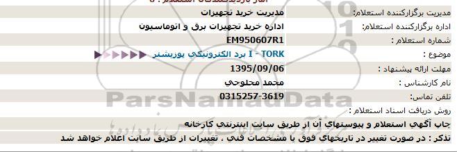 اداره برگزارکننده استعلام: اداره خرید تجهیزات برق و اتوماسیون