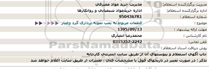 اداره برگزارکننده استعلام: اداره خریدمواد شیمیایی و روانکارها