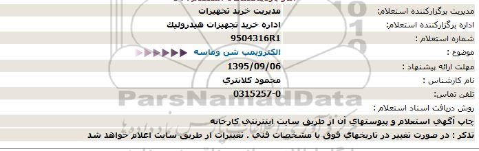 اداره برگزارکننده استعلام: اداره خرید تجهیزات هیدرولیک