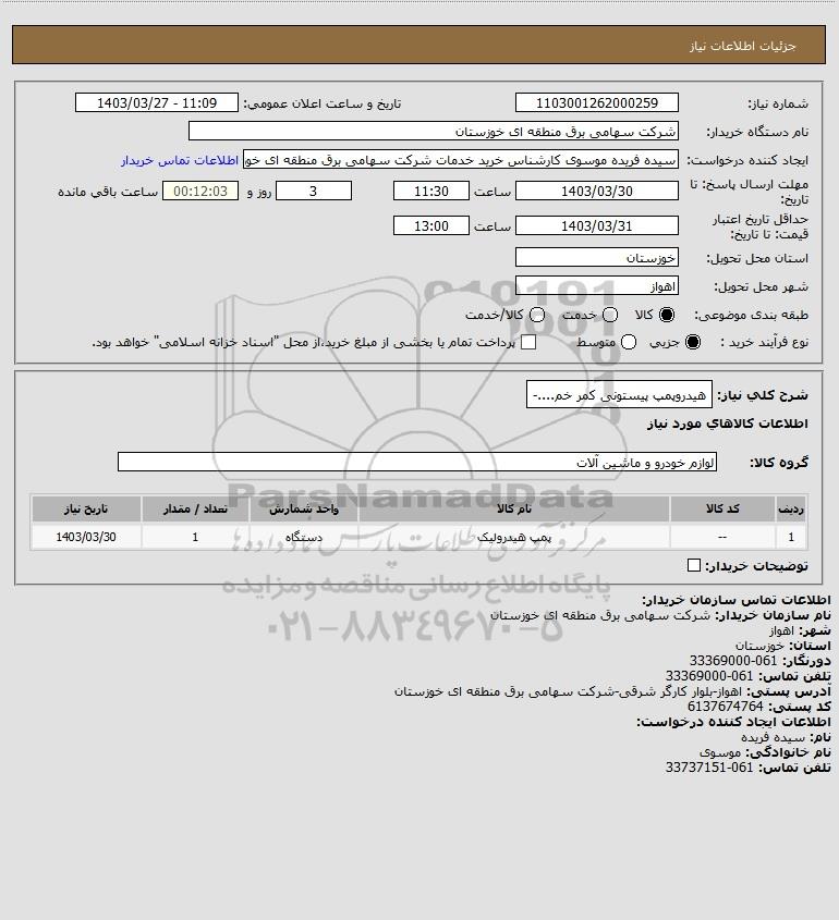 نام دستگاه خریدار:شرکت سهامی برق منطقه ای خوزستان
