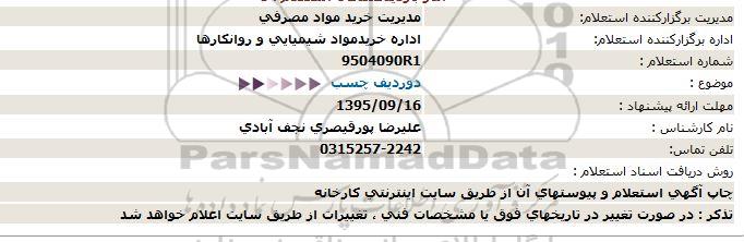 اداره برگزارکننده استعلام: اداره خرید مواد شیمیایی و روانکارها