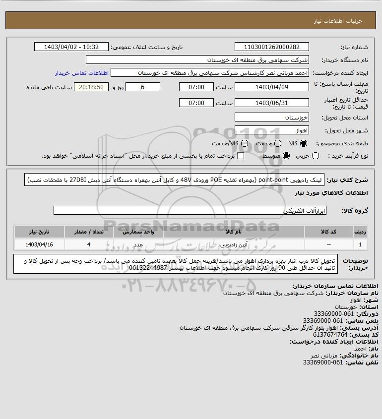 نام دستگاه خریدار:شرکت سهامی برق منطقه ای خوزستان