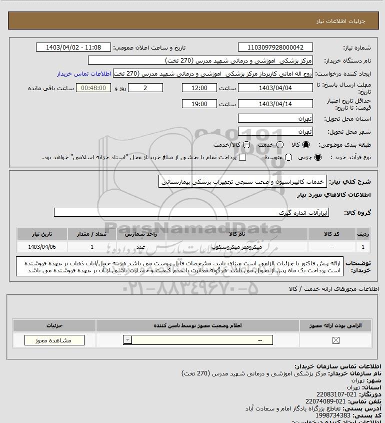 نام سازمان خریدار: مرکز پزشکی اموزشی و درمانی شهید مدرس (270 تخت)