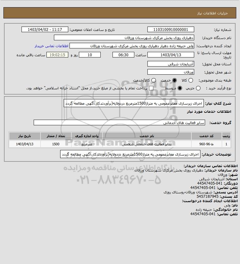 نام دستگاه خریدار:دهیاری روزی بخش مرکزی شهرستان ورزقان