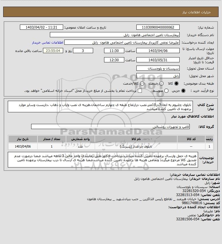 نام سازمان خریدار: بیمارستان تامین اجتماعی هامون زابل