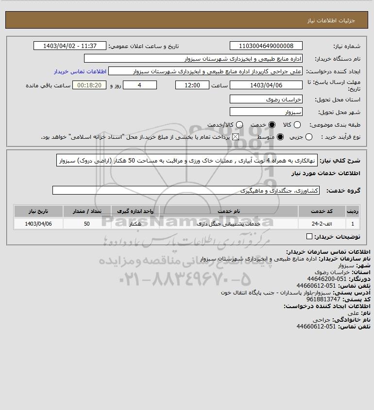 نام دستگاه خریدار:اداره منابع طبیعی و ابخیزداری شهرستان سبزوار