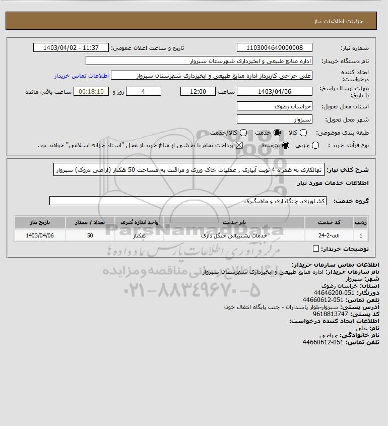 نام دستگاه خریدار:اداره منابع طبیعی و ابخیزداری شهرستان سبزوار