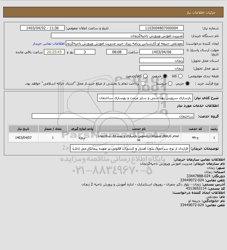 نام دستگاه خریدار:مدیریت اموزش وپرورش ناحیه2زنجان