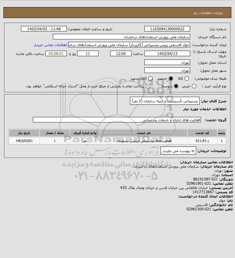 شرح کلی نیاز: پشتیبانی تأسیسات و ابنیه سازمان (1 نفر)