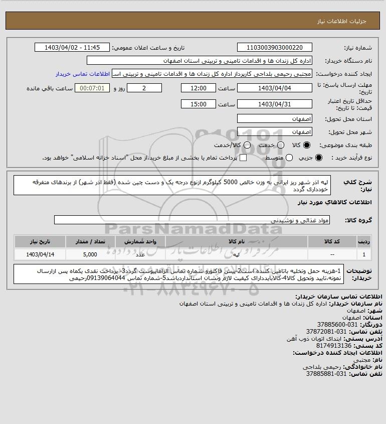 نام دستگاه خریدار:اداره کل زندان ها و اقدامات تامینی و تربیتی استان اصفهان
