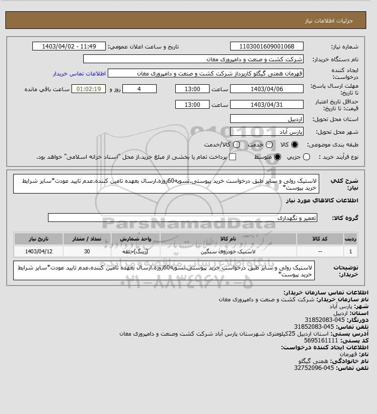 نام سازمان خریدار: شرکت کشت و صنعت و دامپروری مغان