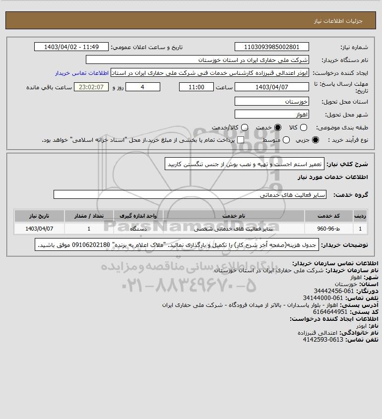 نام دستگاه خریدار:شرکت ملی حفاری ایران در استان خوزستان