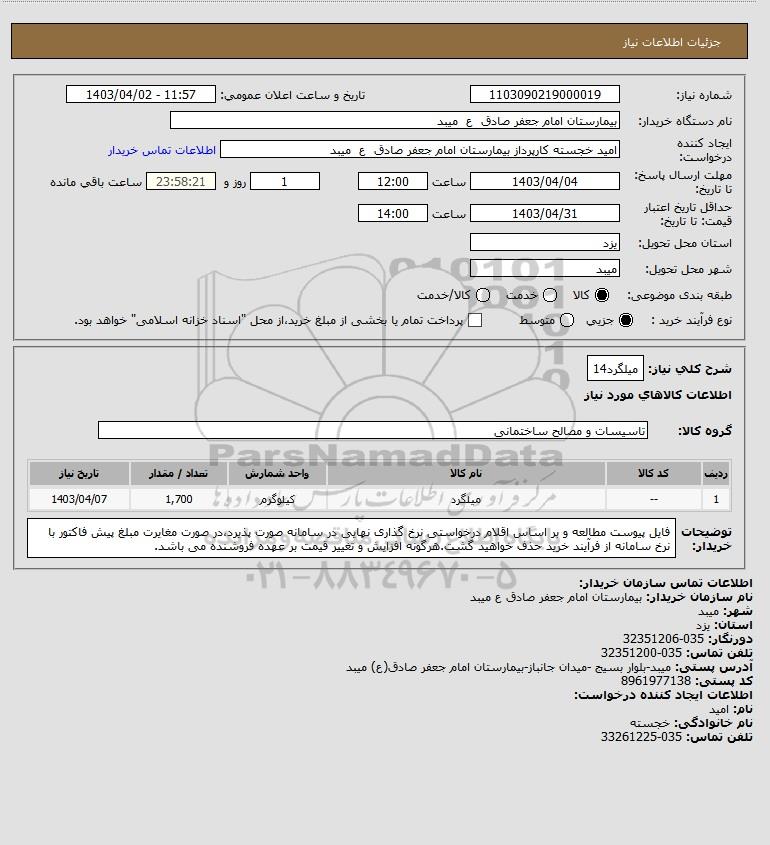نام سازمان خریدار: بیمارستان امام جعفر صادق ع میبد