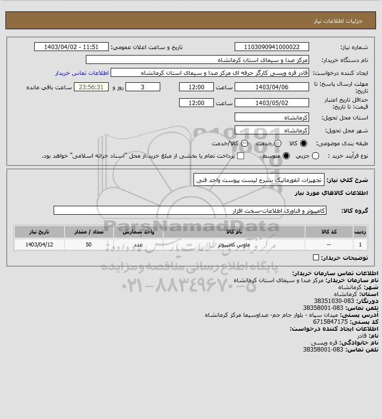 نام دستگاه خریدار:مرکز صدا و سیمای استان کرمانشاه