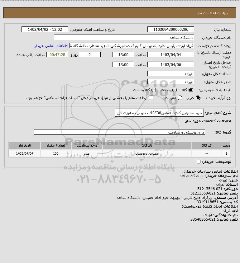 نام دستگاه خریدار:دانشگاه شاهد