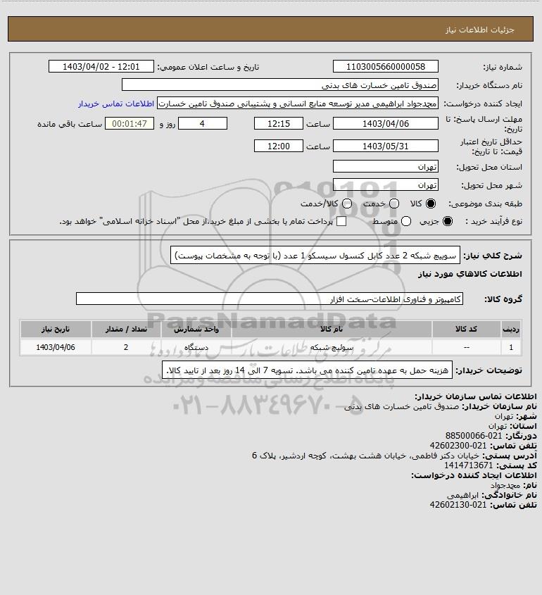| 1 | -- | سوئیچ شبکه | دستگاه | 2 | 1403/04/06 |